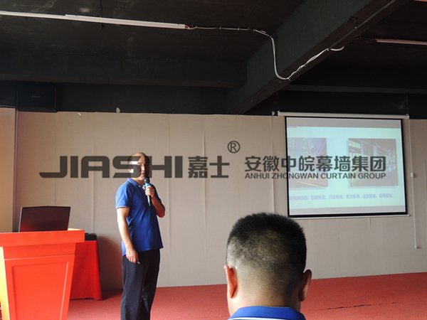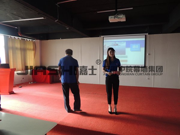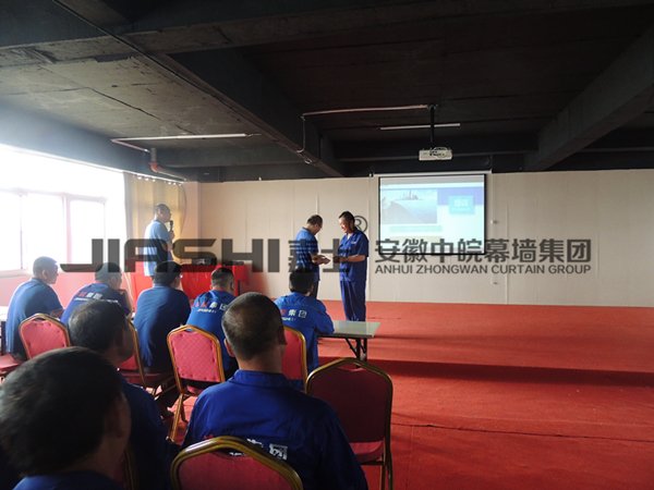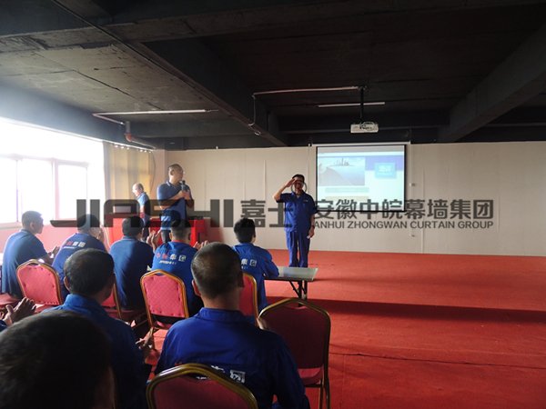 會(huì)議的第二項(xiàng)議程是由生產(chǎn)總調(diào)度江德林來(lái)主持,為全體員工講解和培訓(xùn)鋁單板的的知識(shí),其中包括鋁單板的國(guó)際技術(shù)標(biāo)準(zhǔn),產(chǎn)品分類,以及完整的工藝流程,和生產(chǎn)中應(yīng)該注意的問題。