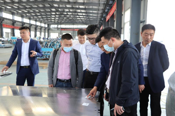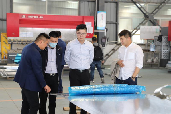 在公司領(lǐng)導(dǎo)的帶領(lǐng)下,考察團(tuán)參觀了解了鋁單板的各項(xiàng)生產(chǎn)流程??疾靾F(tuán)先 后參觀了公司辦公區(qū)和鈑金車間和噴涂車間等生產(chǎn)流水線。